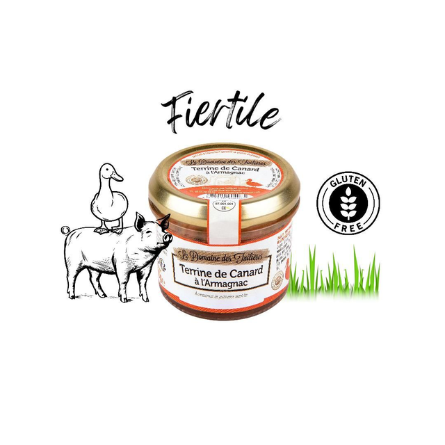 Ingrédients : gorge de porc (origine France), viande de canard avec peau, foie de poulet, foie maigre de canard, lait, oeufs, sel, armagnac 0,8%, épices et aromates.